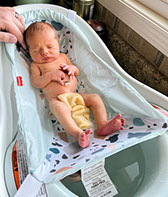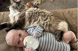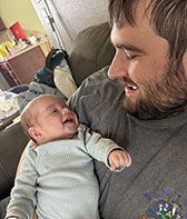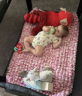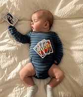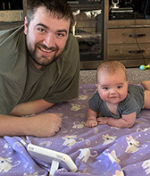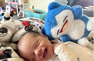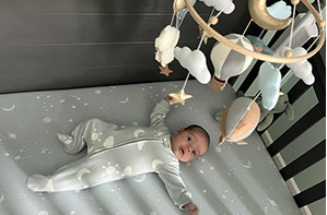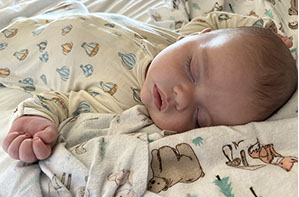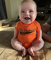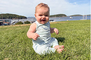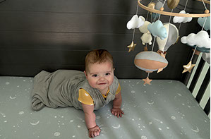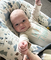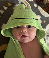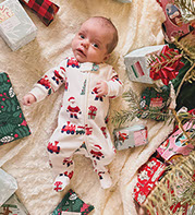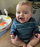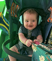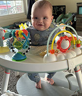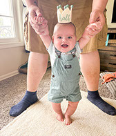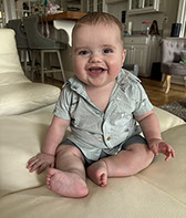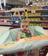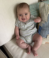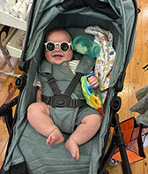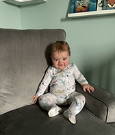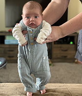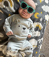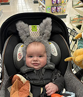 He enjoys wearing Carters & Oshkosh, and Cat & Jack from Target. He currently wears a size 12-18 Months.