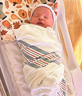 18 Months is great for Fall/Winter or 24 Months would be great if getting him something cute for next year!